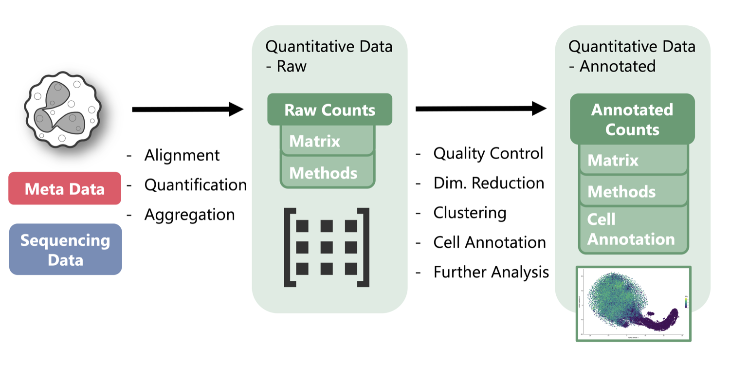 Every project in the Atlas connects raw and processed data through a clear hierarchy: project, sample, library or sequencing run, and analysis result. Each layer carries metadata tags describing its biological context and technical processing. Storage objects and figures are indexed through persistent identifiers and linked directly to other Atlas tools such as our single-cell analysis App Neutrophil Canvas.